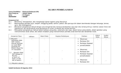 Penyusunan model silabus dan rpp ini berpedoman pada standar kompetensi lulusan (skl) dan standar isi (si) pendidikan agama islam dan bahasa arab di madrasah sebagaimana tertuang dalam. Rpp satu lembar akidah akhlak kelas 3 sd mi pelajaran 1 dewanguru com. Contoh silabus akidah akhlak sd/mi kelas 4 semester 1 dan 2 kurikulum 2013 tahun 2020. Silabus aqidah akhlak kelas 4 mi. Silabus digunakan untuk menyebut suatu produk pengembangan kurikulum berupa penjabaran lebih lanjut dari standart kompetensi dan kemampuan dasar yang.