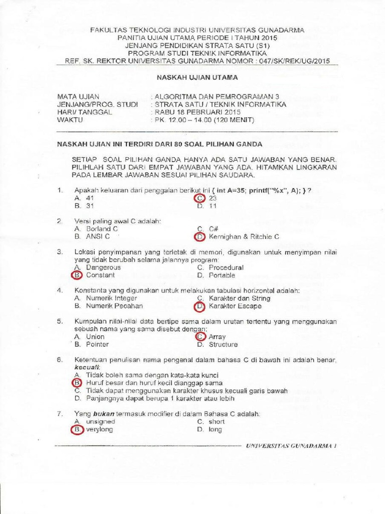 Soal Ujian Utama Algoritma Dan Pemrograman 2 Gunadarma : Cheat Um Gunadarma Kunci Jawaban Um Dan Cara Penggunaan Um Tahun 2020 Darahpemuda Com Darahpemuda Com : Soal ujian utama algoritma dan pemrograman 2 gunadarma.. Maybe you would like to learn more about one of these? Check spelling or type a new query. We did not find results for: Soal ujian utama algoritma dan pemrograman 2 gunadarma.